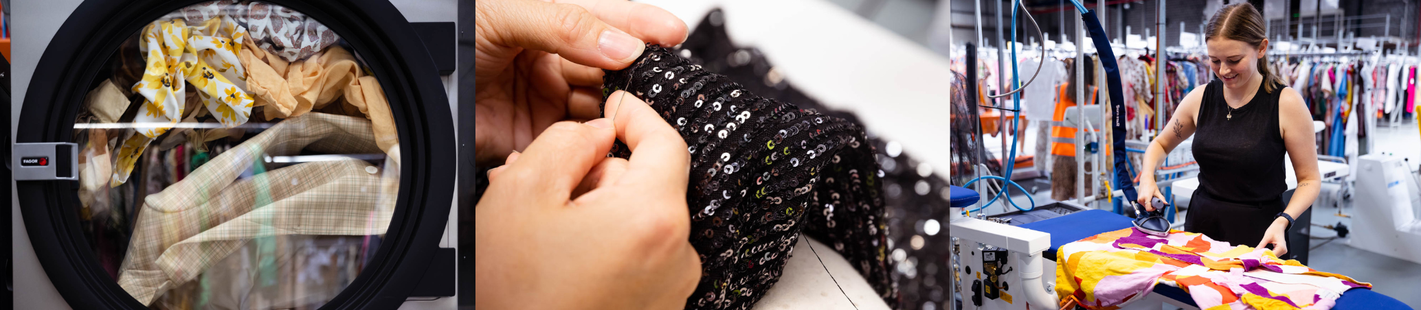 We are experts in caring for and refurbishing garments. We even have our own button machine so we don’t need to source new buttons, which would add additional impact to the environment through production and shipping.
